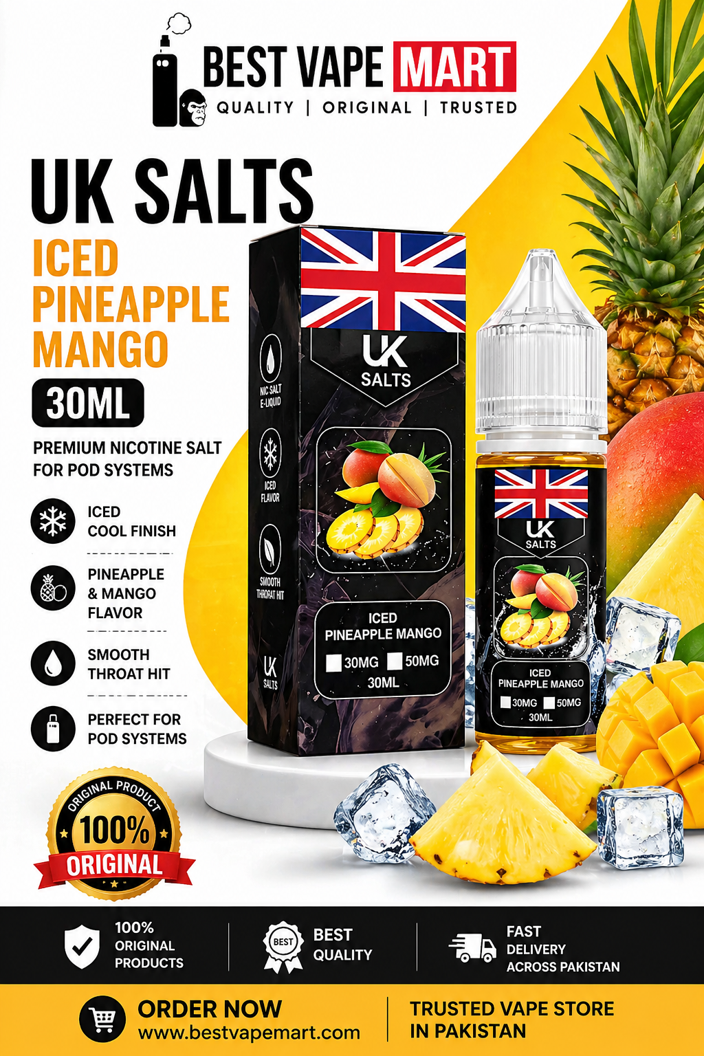 You can buy UK Salts Iced Pineapple Mango 30ML in Pakistan from Best Vape Mart at the best price.